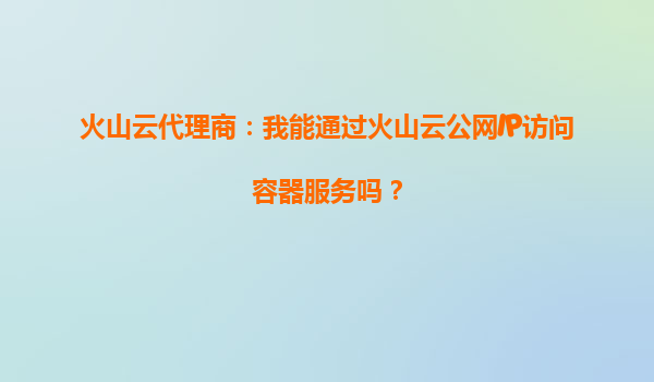 2025-10-01火山云代理商:我能通過火山云公網(wǎng)IP訪問容器服務(wù)嗎? 一、火山云公網(wǎng)IP與容器服務(wù)的關(guān)系 火山引擎(VolcanoEngine)作為字節(jié)跳動旗下的云計算服務(wù)平臺,提供了包括虛機(jī)、容器、存儲、網(wǎng)絡(luò)等在內(nèi)的全方位...