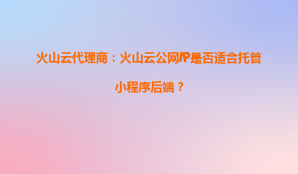 2025-10-01火山云代理商:火山云公網(wǎng)IP是否適合托管小程序后端? 引言 隨著小程序的普及,越來越多的企業(yè)和開發(fā)者開始關(guān)注如何高效、穩(wěn)定地托管小程序后端服務(wù)。火山引擎...