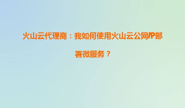 2025-10-01火山云代理商指南:如何利用火山云公網(wǎng)IP高效部署微服務(wù) 一、火山云公網(wǎng)IP的核心優(yōu)勢 火山築擎(VolcanoEngine)提供的公網(wǎng)IP服務(wù)具備以下關(guān)鍵特性: ...