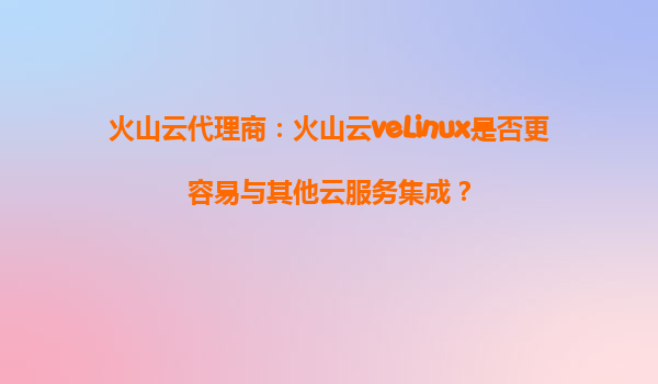 2025-09-27火山云代理商:火山云veLinux是否更容易與其他云服務(wù)集成? 在云計算領(lǐng)域,服務(wù)之間的集成能力是企業(yè)選擇云平臺的重要考量因素之一。作為火山引擎推出的一款企業(yè)級Linux操作系統(tǒng),veLinux以其卓越的性能和安全特...