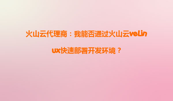 2025-09-28火山云veLinux:開發(fā)者快速部署開發(fā)環(huán)境的利器 為什么選擇火山云veLinux? 對于開發(fā)者而言,快速搭建穩(wěn)定、高效的開發(fā)環(huán)境是提升生產(chǎn)力的關(guān)鍵。火山云veLinux作為火山引擎推出的云服務(wù)器操作系統(tǒng),專為云計...