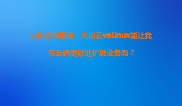 2025-09-27火山云veLinux:云端擴(kuò)展業(yè)務(wù)的智能之選 什么是火山云veLinux? 火山云veLinux是火山引擎推出的高性能云服務(wù)器操作系統(tǒng),專為云計算環(huán)境優(yōu)化設(shè)計。作為火山云代理商的明星產(chǎn)品,它基于穩(wěn)定的Linux...