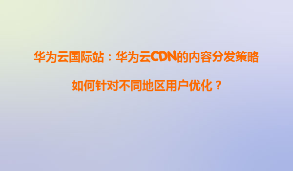 2026-01-09華為云國際站:華為云CDN的內(nèi)容分發(fā)策略如何針對不同地區(qū)用戶優(yōu)化? 引言 在全球化數(shù)字時代,內(nèi)容分發(fā)網(wǎng)絡(luò)(CDN)已成為提升用戶體驗、降低延遲的關(guān)鍵技術(shù)。華為云CDN憑借其全球覆蓋和智能調(diào)...