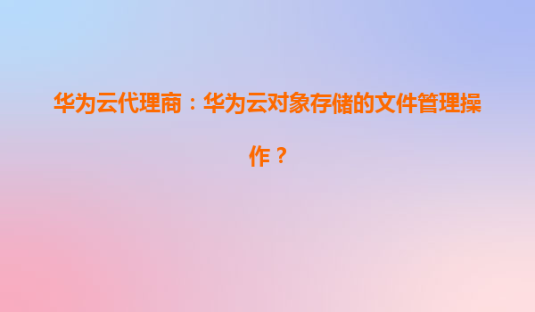 2026-01-07華為云代理商:華為云對象存儲的文件管理操作指南 一、華為云對象存儲(OBS)概述 華為云對象存儲服務(wù)(ObjectStorageService,簡稱OBS)是一種高可靠、高性能、安全合規(guī)的云存儲服務(wù)...