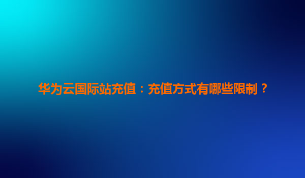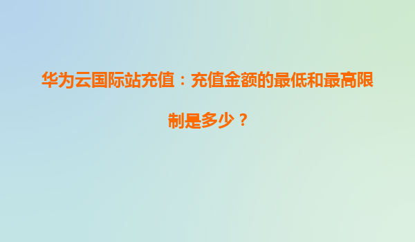 2026-01-06華為云國際站充值:充值方式有哪些限制? 引言 隨著云計算技術的快速發(fā)展,越來越多的企業(yè)選擇將業(yè)務遷移到云端。華為云作為全球領先的云服務提供商,憑借其強大的技術實力和全球化的服務...