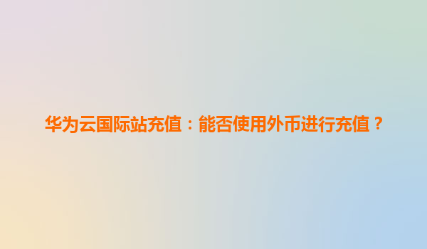 2026-01-06華為云國際站充值:能否使用外幣進行充值? 一、華為云國際站支持的外幣充值方式 華為云作為全球領先的云計算服務提供商,為滿足國際用戶的多樣化需求,其國際站(HuaweiCloudInternational)提供了靈活...