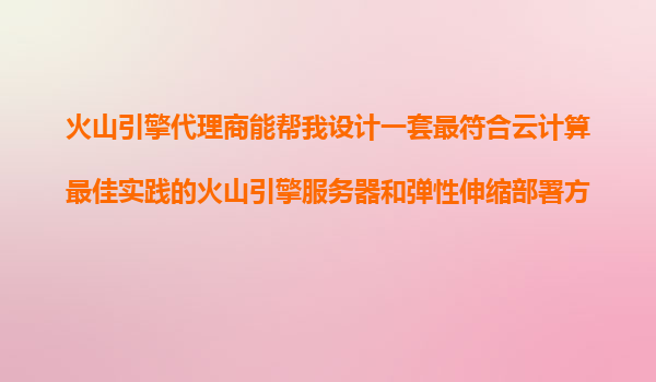 2025-11-21火山引擎代理商如何設(shè)計(jì)符合云計(jì)算最佳實(shí)踐的服務(wù)器與彈性伸縮方案 一、火山引擎的核心優(yōu)勢 作為字節(jié)跳動旗下的云計(jì)算服務(wù)品牌,火山引擎在以下方面展現(xiàn)突出優(yōu)勢: 全球基礎(chǔ)設(shè)施:覆蓋亞太、歐美等地...