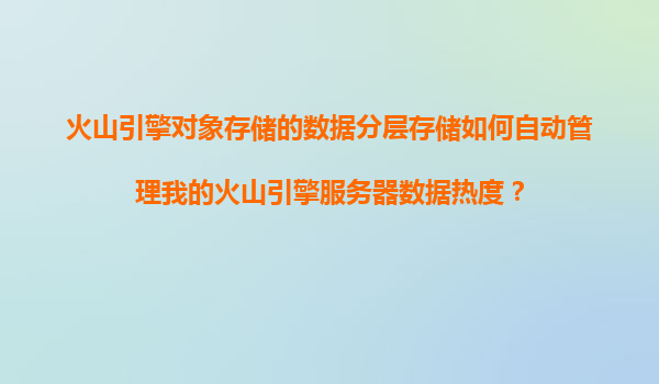 2025-11-21火山引擎對象存儲的數(shù)據(jù)分層存儲如何自動管理數(shù)據(jù)熱度? 引言 在數(shù)字化時(shí)代,數(shù)據(jù)已經(jīng)成為企業(yè)的核心資產(chǎn)之一。隨著數(shù)據(jù)量的不斷增長,如何高效、經(jīng)濟(jì)地存儲和管理數(shù)據(jù)成為企業(yè)面臨的重要挑戰(zhàn)。火山引擎對...