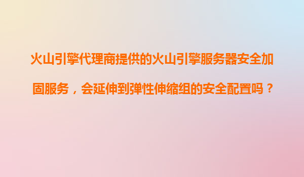 4008-020-360 火山引擎代理商提供的服務(wù)器安全加固服務(wù)是否覆蓋彈性伸縮組? 一、火山引擎服務(wù)器安全加固服務(wù)的核心特性 火山引擎作為字節(jié)跳動旗下的云服務(wù)平臺,其代理商提供的安全加固服務(wù)涵蓋操作系統(tǒng)漏洞修復(fù)、入...