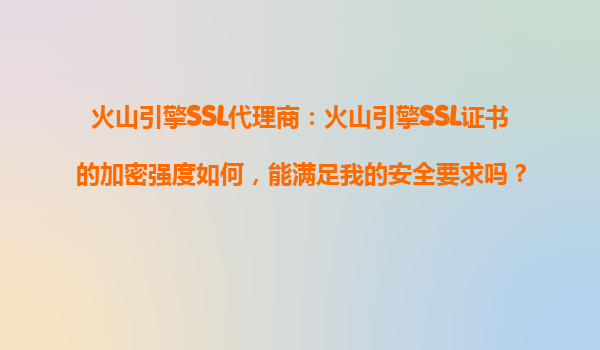 2025-10-16火山引擎SSL代理商:火山引擎SSL證書(shū)的加密強(qiáng)度如何,能滿(mǎn)足我的安全要求嗎? 引言:SSL證書(shū)的重要性 在當(dāng)今數(shù)字化時(shí)代,網(wǎng)絡(luò)安全已成為企業(yè)和個(gè)人不可忽視的重要議題。SSL證書(shū)作為保障...