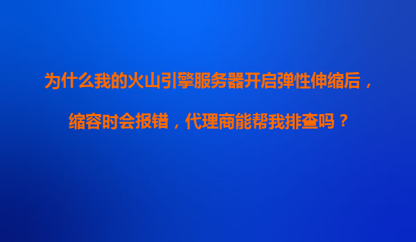 2025-11-16為什么我的火山引擎服務(wù)器開(kāi)啟彈性伸縮后,縮容時(shí)會(huì)報(bào)錯(cuò)?代理商能幫我排查嗎? 一、彈性伸縮常見(jiàn)縮容報(bào)錯(cuò)原因 在火山引擎開(kāi)啟彈性伸縮(AutoScaling)功能后,縮容過(guò)程中可能遇到多種報(bào)...