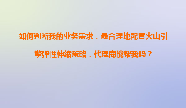 2025-11-14如何合理配置火山引擎彈性伸縮策略,滿足業(yè)務(wù)需求?代理商是否能助力? 一、理解彈性伸縮的核心價(jià)值與業(yè)務(wù)需求關(guān)聯(lián) 彈性伸縮(AutoScaling)是云計(jì)算中根據(jù)業(yè)務(wù)負(fù)載動(dòng)態(tài)調(diào)整資源的核心功能。火山引擎的彈...