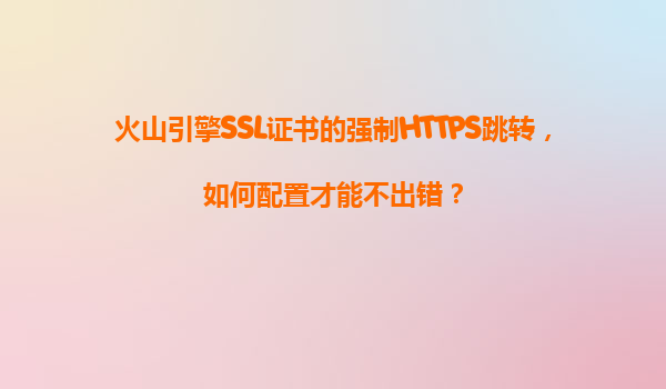 2025-11-13火山引擎SSL證書強(qiáng)制HTTPS跳轉(zhuǎn)配置全攻略 為什么需要強(qiáng)制HTTPS跳轉(zhuǎn)? 在當(dāng)今互聯(lián)網(wǎng)環(huán)境中,網(wǎng)站安全至關(guān)重要。HTTPS協(xié)議通過加密數(shù)據(jù)傳輸,有效防止信息被竊取或篡改。火山...