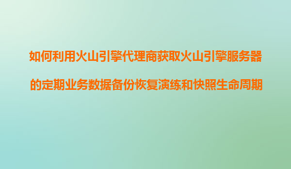 2025-11-09如何利用火山引擎代理商獲取火山引擎服務(wù)器的定期業(yè)務(wù)數(shù)據(jù)備份恢復(fù)演練和快照生命周期管理服務(wù)? 一、什么是火山引擎及其代理商的價(jià)值? 火山引擎是字節(jié)跳動旗下的云服務(wù)平臺,提供計(jì)算、存儲、網(wǎng)絡(luò)、數(shù)據(jù)...
