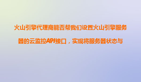 2025-11-09火山引擎代理商助力企業(yè)云監(jiān)控API集成:打通運(yùn)維系統(tǒng)的關(guān)鍵路徑 一、火山引擎代理商的核心服務(wù)能力 作為火山引擎官方合作伙伴,代理商不僅提供基礎(chǔ)設(shè)施資源(如云服務(wù)器、存儲等),更具...