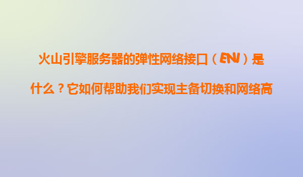 2025-11-09火山引擎彈性網(wǎng)絡(luò)接口(ENI)解析:實(shí)現(xiàn)主備切換與網(wǎng)絡(luò)高可用的關(guān)鍵技術(shù) 一、什么是火山引擎彈性網(wǎng)絡(luò)接口(ENI)? 火山引擎彈性網(wǎng)絡(luò)接口(ElasticNetworkInterface,ENI)是一種虛擬...