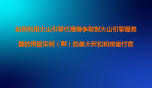 2025-11-08如何利用火山引擎代理商爭(zhēng)取到火山引擎服務(wù)器的預(yù)留實(shí)例(RI)的最大折扣和按量付費(fèi)的成本優(yōu)化方案? 引言 在云計(jì)算時(shí)代,成本優(yōu)化一直是企業(yè)關(guān)注的重點(diǎn)。火山引擎作為字節(jié)跳動(dòng)旗下的云計(jì)算服務(wù)平臺(tái),提供了豐...