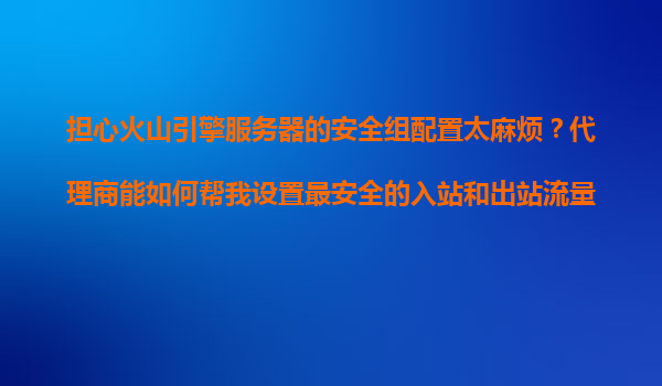 4008-020-360 擔(dān)心火山引擎服務(wù)器的安全組配置太麻煩?代理商如何幫你設(shè)置最安全的入站和出站流量控制規(guī)則 一、安全組配置的重要性與常見痛點(diǎn) 安全組作為云計(jì)算環(huán)境中至關(guān)重要的網(wǎng)絡(luò)安全屏障,承擔(dān)著控制服務(wù)器入站和出...