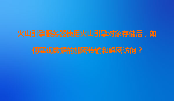 4008-020-360 火山引擎服務(wù)器使用對(duì)象存儲(chǔ)的加密傳輸與解密訪問(wèn)方案 火山引擎對(duì)象存儲(chǔ)的安全特性 火山引擎對(duì)象存儲(chǔ)(TOS)提供全鏈路數(shù)據(jù)安全防護(hù),內(nèi)置服務(wù)端加密(SSE)功能,支持用戶自定義密鑰或托管密鑰的加密方式...