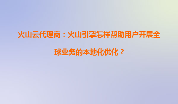 2025-03-29火山引擎與代理商如何助力企業(yè)全球化業(yè)務(wù)本地化優(yōu)化? 一、全球化業(yè)務(wù)面臨的本地化挑戰(zhàn) 企業(yè)在拓展海外市場(chǎng)時(shí),常面臨語言適配、文化差異、合規(guī)風(fēng)險(xiǎn)、網(wǎng)絡(luò)延遲、本地化運(yùn)營(yíng)五大核心痛點(diǎn)。傳統(tǒng)解決方案...