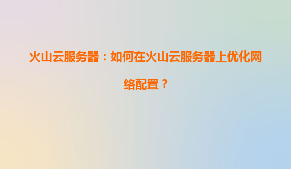 2025-03-29火山云服務(wù)器:如何在火山云服務(wù)器上優(yōu)化網(wǎng)絡(luò)配置? 一、引言:網(wǎng)絡(luò)優(yōu)化的重要性 在云計(jì)算時(shí)代,服務(wù)器的網(wǎng)絡(luò)性能直接影響用戶體驗(yàn)和業(yè)務(wù)連續(xù)性。對(duì)于企業(yè)而言,高延遲、帶寬不足或網(wǎng)絡(luò)波動(dòng)可能導(dǎo)致服務(wù)中...