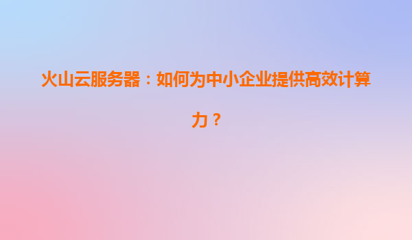 2025-03-28火山云服務(wù)器:如何為中小企業(yè)提供高效計算力? 在數(shù)字化轉(zhuǎn)型浪潮中,中小企業(yè)面臨著算力需求激增、IT成本高企、技術(shù)門檻復(fù)雜等多重挑戰(zhàn)。火山引擎憑借其云服務(wù)器產(chǎn)品及生態(tài)代理...
