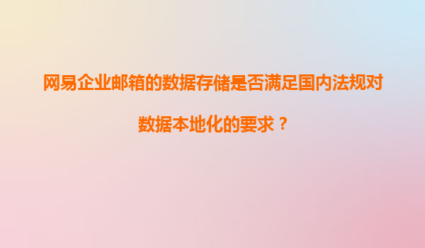 2025-11-21網(wǎng)易企業(yè)郵箱的數(shù)據(jù)存儲如何滿足國內(nèi)法規(guī)對數(shù)據(jù)本地化的要求? 隨著《網(wǎng)絡(luò)安全法》《數(shù)據(jù)安全法》和《個人信息保護(hù)法》的相繼實(shí)施,企業(yè)對數(shù)據(jù)存儲合規(guī)性的關(guān)注度顯著提升。作為國內(nèi)領(lǐng)先的企業(yè)郵箱服務(wù)商,網(wǎng)...