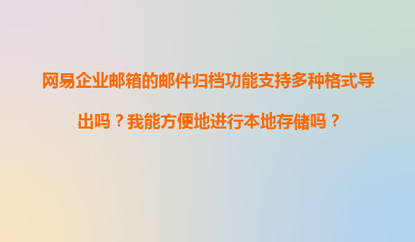 2025-11-21網(wǎng)易企業(yè)郵箱郵件歸檔功能解析:多格式導(dǎo)出與本地存儲的便捷性 一、郵件歸檔的核心價值 在數(shù)字化辦公時代,郵件作為企業(yè)重要溝通憑證,其歸檔管理直接關(guān)系到數(shù)據(jù)合規(guī)性與業(yè)務(wù)連續(xù)性。網(wǎng)易企業(yè)郵箱的郵件歸檔功...