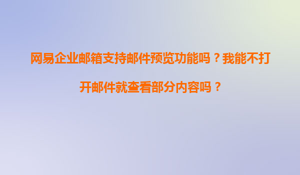 2025-11-21網(wǎng)易企業(yè)郵箱郵件預(yù)覽功能解析:高效辦公的秘密武器 一、網(wǎng)易企業(yè)郵箱是否支持郵件預(yù)覽功能? 是的!網(wǎng)易企業(yè)郵箱全面支持郵件預(yù)覽功能,用戶無需打開郵件即可快速瀏覽部分內(nèi)容。在收件箱列表中,系統(tǒng)會智...