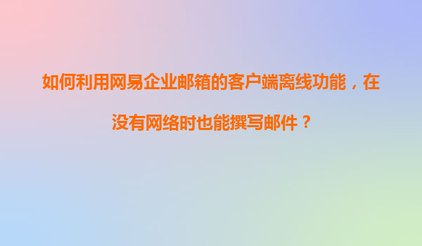 2025-11-21網(wǎng)易企業(yè)郵箱的客戶端離線功能簡介 網(wǎng)易企業(yè)郵箱作為國內(nèi)領(lǐng)先的企業(yè)級郵箱服務(wù)提供商,不僅提供穩(wěn)定高效的在線郵件服務(wù),還貼心地為用戶設(shè)計了客戶端離線功能。這一功能讓用戶在沒有網(wǎng)絡(luò)連接的情況下,依然能夠撰寫...