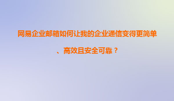 4008-020-360 網(wǎng)易企業(yè)郵箱如何讓我的企業(yè)通信變得更簡單、高效且安全可靠? 一、網(wǎng)易企業(yè)郵箱的核心理念與價值 網(wǎng)易企業(yè)郵箱作為國內(nèi)領(lǐng)先的企業(yè)通信解決方案,致力于通過技術(shù)創(chuàng)新和服務(wù)優(yōu)化,為企業(yè)用戶提供簡單、高效...