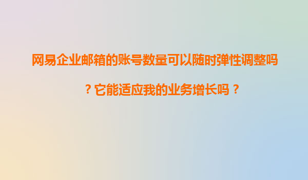 2025-11-21網(wǎng)易企業(yè)郵箱賬號數(shù)量的彈性調(diào)整能力 網(wǎng)易企業(yè)郵箱作為國內(nèi)領(lǐng)先的企業(yè)級郵件服務(wù)提供商,其賬號數(shù)量支持隨時彈性調(diào)整的功能備受企業(yè)用戶青睞。無論您的企業(yè)規(guī)模大小,無論是初創(chuàng)團(tuán)隊(duì)還是大型集團(tuán),網(wǎng)易企業(yè)郵箱都能...