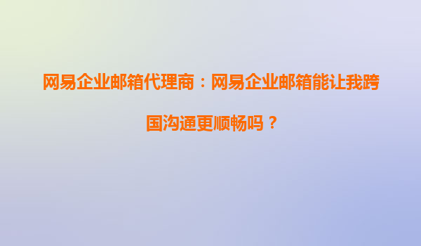 2025-09-24網(wǎng)易企業(yè)郵箱代理商:網(wǎng)易企業(yè)郵箱能讓我跨國溝通更順暢嗎? 一、跨國溝通的挑戰(zhàn)與需求 在全球化的商業(yè)環(huán)境中,跨國溝通已成為企業(yè)日常運營的重要組成部分。然而,跨國溝通往往面臨諸多挑戰(zhàn),例如...