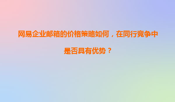 2025-11-13網(wǎng)易企業(yè)郵箱的價(jià)格策略與市場(chǎng)優(yōu)勢(shì)分析 網(wǎng)易企業(yè)郵箱的市場(chǎng)定位 作為國內(nèi)領(lǐng)先的電子郵件服務(wù)提供商,網(wǎng)易企業(yè)郵箱憑借其穩(wěn)定的性能和豐富的功能,在中小企業(yè)及大型集團(tuán)客戶中占據(jù)重要市場(chǎng)份額。其價(jià)格策略采取...