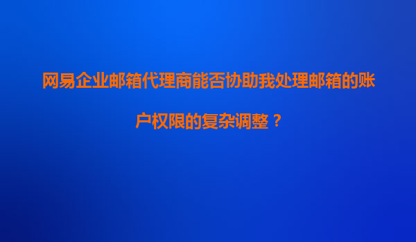 2025-11-13網(wǎng)易企業(yè)郵箱代理商能否協(xié)助處理郵箱賬戶的復(fù)雜權(quán)限調(diào)整? 一、企業(yè)郵箱權(quán)限管理的常見挑戰(zhàn) 在企業(yè)管理中,郵箱賬戶權(quán)限的調(diào)整往往涉及多個(gè)維度的復(fù)雜操作: 部門架構(gòu)變動(dòng)時(shí)的權(quán)限繼承問題 高管與普通員工的郵...