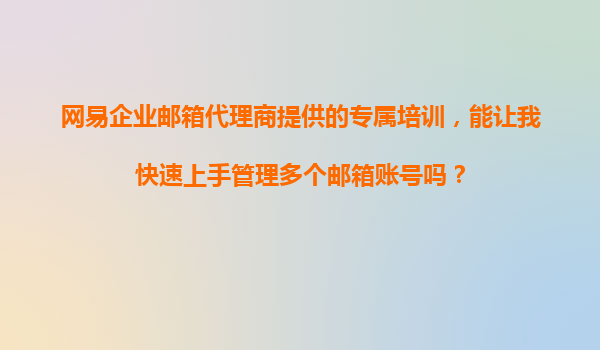 2025-11-12網(wǎng)易企業(yè)郵箱代理商專屬培訓(xùn):助力高效管理多個(gè)郵箱賬號(hào) 一、為什么選擇網(wǎng)易企業(yè)郵箱? 網(wǎng)易企業(yè)郵箱作為國(guó)內(nèi)領(lǐng)先的企業(yè)級(jí)郵件服務(wù)提供商,憑借以下核心優(yōu)勢(shì),成為眾多企業(yè)的首選: 穩(wěn)定可靠的系統(tǒng)架...