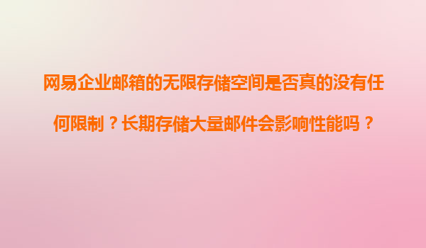 2025-11-10網(wǎng)易企業(yè)郵箱的無限存儲(chǔ)空間是否真的沒有任何限制?長(zhǎng)期存儲(chǔ)大量郵件會(huì)影響性能嗎? 一、網(wǎng)易企業(yè)郵箱的“無限存儲(chǔ)”究竟意味著什么? 網(wǎng)易企業(yè)郵箱在宣傳中提到的“無限存儲(chǔ)”并非絕對(duì)無限制,而是基...