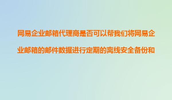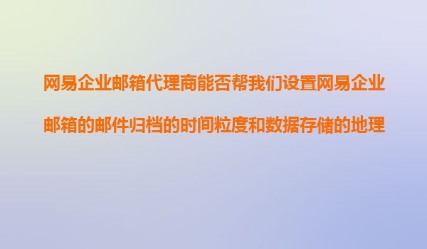 2025-11-10網(wǎng)易企業(yè)郵箱代理商能否幫我們?cè)O(shè)置網(wǎng)易企業(yè)郵箱的郵件歸檔的時(shí)間粒度和數(shù)據(jù)存儲(chǔ)的地理位置選擇? 一、網(wǎng)易企業(yè)郵箱的郵件歸檔功能概述 網(wǎng)易企業(yè)郵箱作為國(guó)內(nèi)領(lǐng)先的企業(yè)級(jí)郵件服務(wù)提供商,其郵件歸檔功能為...