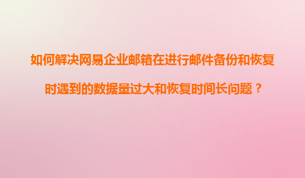 2025-11-10如何高效解決網(wǎng)易企業(yè)郵箱郵件備份與恢復(fù)數(shù)據(jù)量過大及恢復(fù)時(shí)間長(zhǎng)問題 在企業(yè)日常運(yùn)營(yíng)中,郵件作為重要的溝通工具,其數(shù)據(jù)備份和恢復(fù)的效率和穩(wěn)定性直接關(guān)系到企業(yè)的工作流程和信息安全。網(wǎng)易企業(yè)郵箱憑借其強(qiáng)大的技...