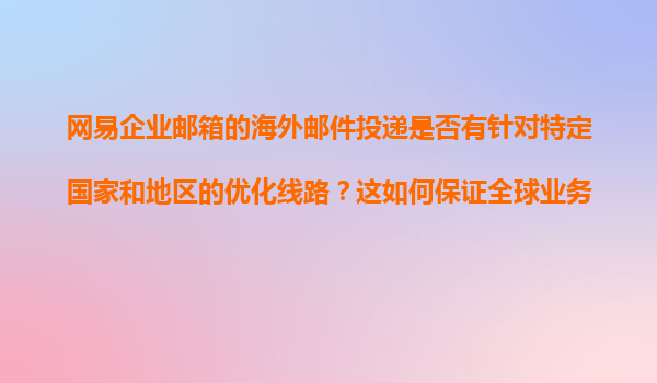 2025-11-10網(wǎng)易企業(yè)郵箱的海外郵件投遞優(yōu)化與全球業(yè)務(wù)暢通保障 全球網(wǎng)絡(luò)布局與智能路由技術(shù) 網(wǎng)易企業(yè)郵箱依托強(qiáng)大的全球化基礎(chǔ)設(shè)施,在全球多個(gè)核心地區(qū)部署了郵件中轉(zhuǎn)服務(wù)器。通過智能DNS解析和動(dòng)態(tài)路由選擇技術(shù),系...