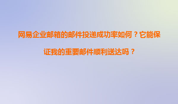 2025-11-21網易企業(yè)郵箱的郵件投遞成功率如何?它能保證我的重要郵件順利送達嗎? 在當今數字化商業(yè)環(huán)境中,電子郵件作為企業(yè)溝通的重要工具,其投遞成功率和穩(wěn)定性直接關系到業(yè)務運營的效率。許多企業(yè)在選擇郵箱服...
