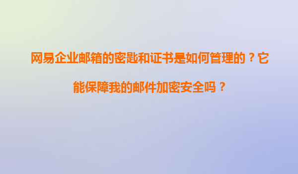 2025-11-21網易企業(yè)郵箱的密匙和證書是如何管理的?它能保障我的郵件加密安全嗎? 網易企業(yè)郵箱的密鑰與證書管理機制 網易企業(yè)郵箱采用行業(yè)領先的加密技術,通過多層次的...