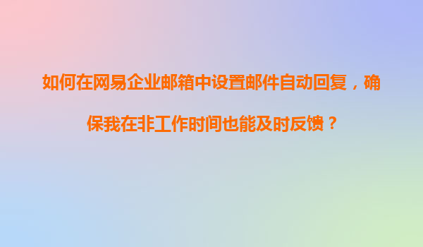 2025-11-21如何在網易企業(yè)郵箱中設置郵件自動回復,確保我在非工作時間也能及時反饋? 一、網易企業(yè)郵箱的優(yōu)勢 作為國內領先的企業(yè)郵箱服務提供商,網易企業(yè)郵箱憑借以下核心優(yōu)勢,成為眾多企業(yè)的首選:...