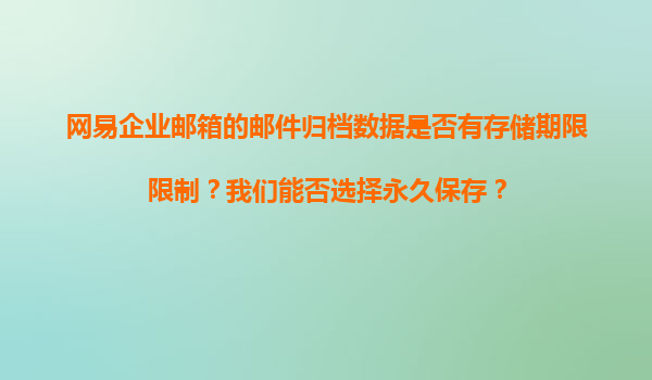 2025-11-09網(wǎng)易企業(yè)郵箱郵件歸檔數(shù)據(jù)的存儲(chǔ)期限及永久保存方案解析 一、網(wǎng)易企業(yè)郵箱的郵件歸檔存儲(chǔ)機(jī)制 網(wǎng)易企業(yè)郵箱作為國(guó)內(nèi)領(lǐng)先的企業(yè)級(jí)郵件服務(wù)提供商,其郵件歸檔功能滿足企業(yè)對(duì)郵件數(shù)據(jù)合規(guī)管理的核心需求。根據(jù)網(wǎng)...