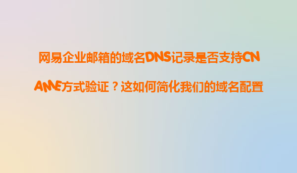 2025-11-09網(wǎng)易企業(yè)郵箱的域名DNS記錄是否支持CNAME方式驗(yàn)證?這如何簡(jiǎn)化我們的域名配置? 在當(dāng)今互聯(lián)網(wǎng)時(shí)代,企業(yè)郵箱已經(jīng)成為企業(yè)日常溝通和信息傳遞的重要工具。作為國(guó)內(nèi)領(lǐng)先的企業(yè)郵箱服務(wù)提供商,網(wǎng)易企業(yè)郵箱以其穩(wěn)定、...