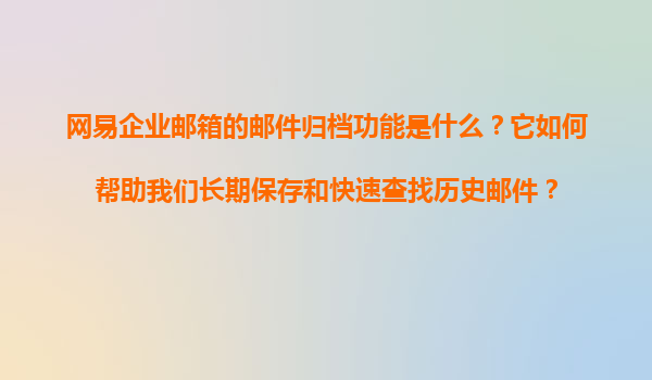 2025-11-08網(wǎng)易企業(yè)郵箱的郵件歸檔功能是什么?它如何幫助我們長期保存和快速查找歷史郵件? 一、網(wǎng)易企業(yè)郵箱郵件歸檔功能概述 網(wǎng)易企業(yè)郵箱的郵件歸檔功能是一項(xiàng)專為企業(yè)用戶設(shè)計(jì)的智能化郵件管理...