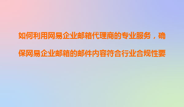 2025-11-07如何利用網(wǎng)易企業(yè)郵箱代理商的專業(yè)服務(wù),確保網(wǎng)易企業(yè)郵箱的郵件內(nèi)容符合行業(yè)合規(guī)性要求和內(nèi)部審核制度? 在數(shù)字化轉(zhuǎn)型的浪潮下,企業(yè)溝通的高效性與安全性日益受到重視。網(wǎng)易企業(yè)郵箱憑借其強(qiáng)大的功能和服...
