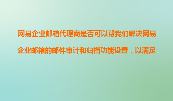 2025-11-07網易企業(yè)郵箱代理商是否可以幫我們解決網易企業(yè)郵箱的郵件審計和歸檔功能設置,以滿足合規(guī)性要求? 一、網易企業(yè)郵箱的核心優(yōu)勢 網易企業(yè)郵箱作為國內領先的企...
