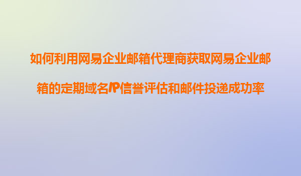 2025-11-07如何利用網易企業(yè)郵箱代理商獲取網易企業(yè)郵箱的定期域名IP信譽評估和郵件投遞成功率報告分析服務? 在現(xiàn)代企業(yè)運營中,高效的郵件通信系統(tǒng)是提升業(yè)務效率的關鍵工具。網易企業(yè)郵箱憑借其穩(wěn)定的系統(tǒng)架構和強...