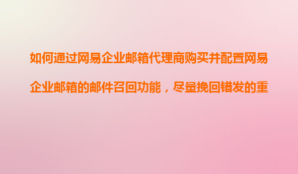 2025-11-07如何通過網易企業(yè)郵箱代理商購買并配置郵件召回功能,挽回錯發(fā)郵件 一、網易企業(yè)郵箱的核心優(yōu)勢 作為國內領先的企業(yè)級郵箱服務商,網易企業(yè)郵箱憑借以下優(yōu)勢成為眾多企...